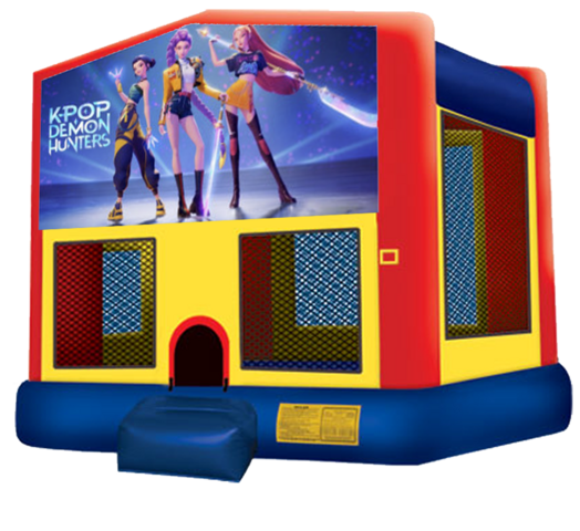 Get ready to bounce into action with the K-Pop Demon Hunters themed bounce house! This 15'x15' inflatable paradise, designed for 8-12 kids, features a vibrant design that brings the electrifying world of K-Pop and demon hunting to life, sparking endless imaginative play. Enjoy peace of mind with its knotless netted windows, ensuring clear visibility and enhanced safety while kids jump and explore. The built-in safety step provides easy, secure access, reducing the risk of trips or falls, while additional safety features offer a worry-free environment for hours of fun.